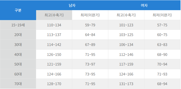 1️⃣ 이 표는 일반적인 참고 범위를 제공하며, 개인의 건강 상태에 따라 혈압 수치는 다를 수 있습니다.